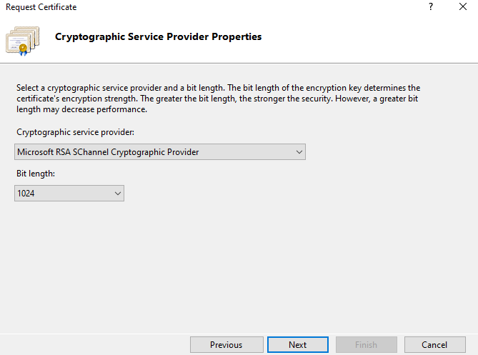 What follows is the encryption choice for the site. You get a choice between the Diffie Helman, and RSA algorithms. RSA is much stronger than basic Diffie Helman, and the recommended key length I would pick is 2048, but this is all up to either the person configuring this or the organization.